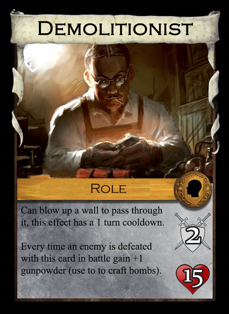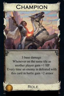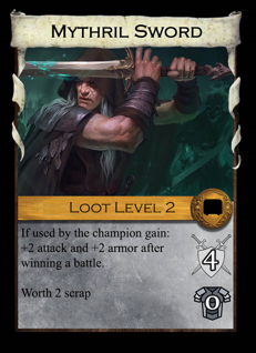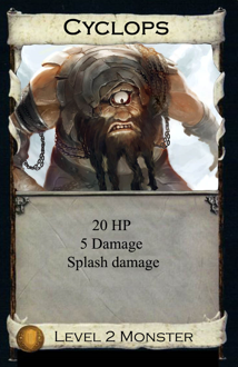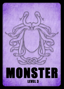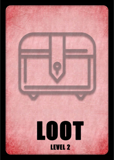Rather than design an entirely new template for the cards, I instead remixed the Dominion card template to better fit our game by adding different elements. For loot cards, I added an attack stat and defense stat and for the monster and role cards, I included the attack and health stats on separate images so players could reference the most important info very quickly. I also moved the tag of what the card was (loot, monster, etc) to a more central area and added the specific symbol which related to the card backs.