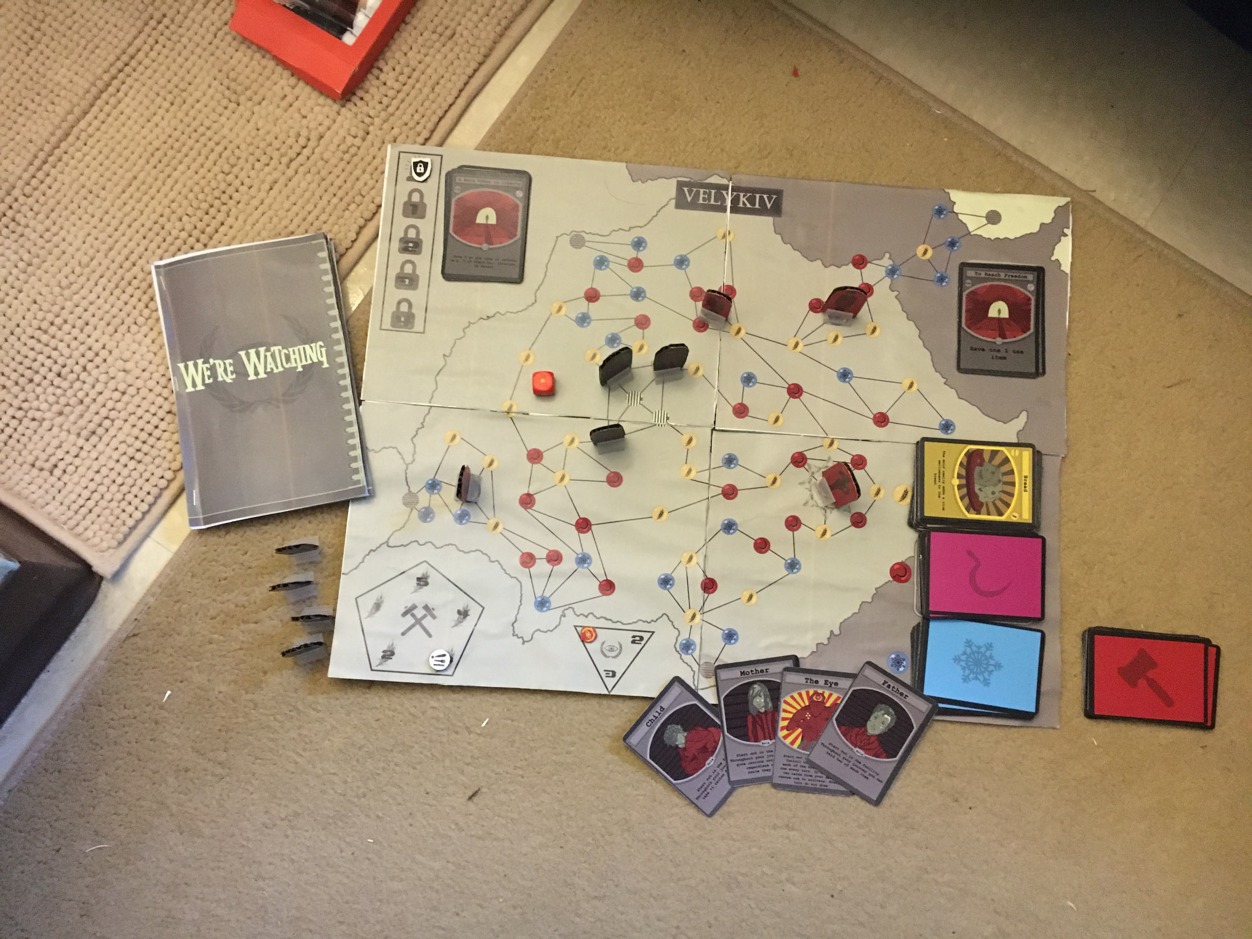 A tense three vs one player board game about escaping an authoritarian country through resource management and team work or trapping your prey.